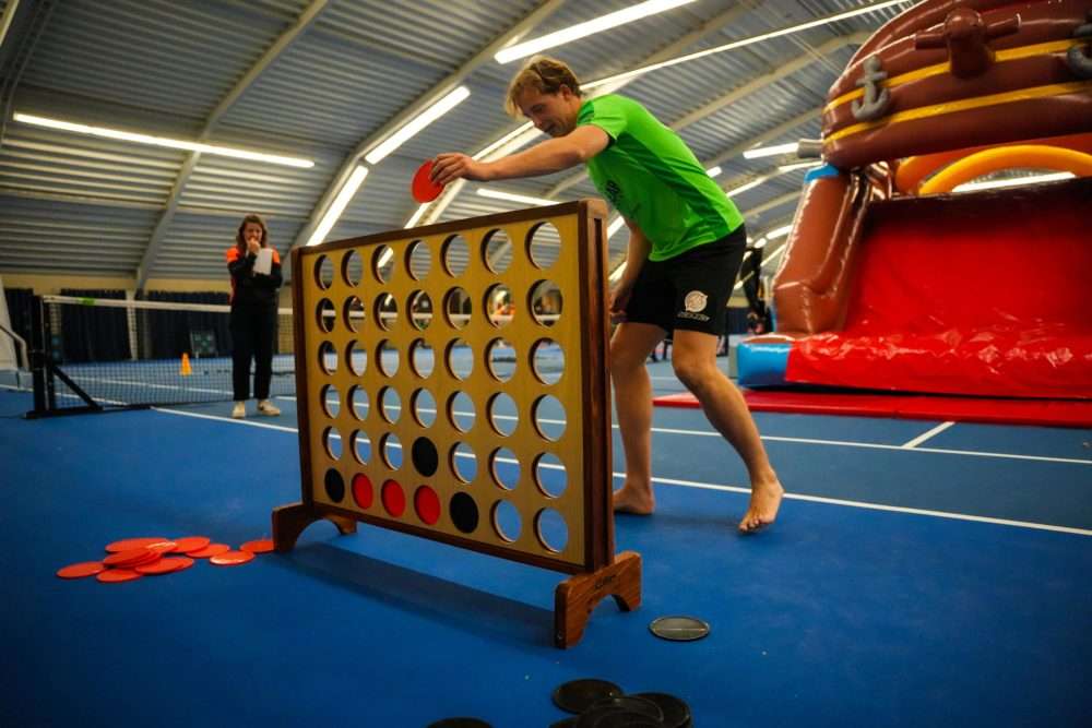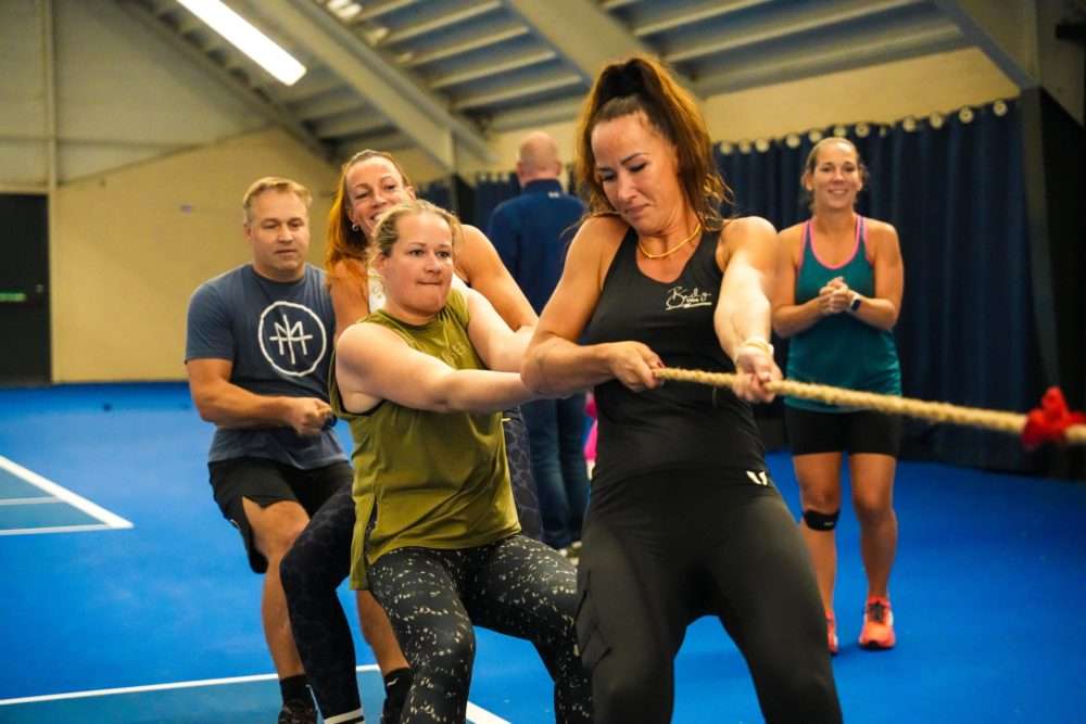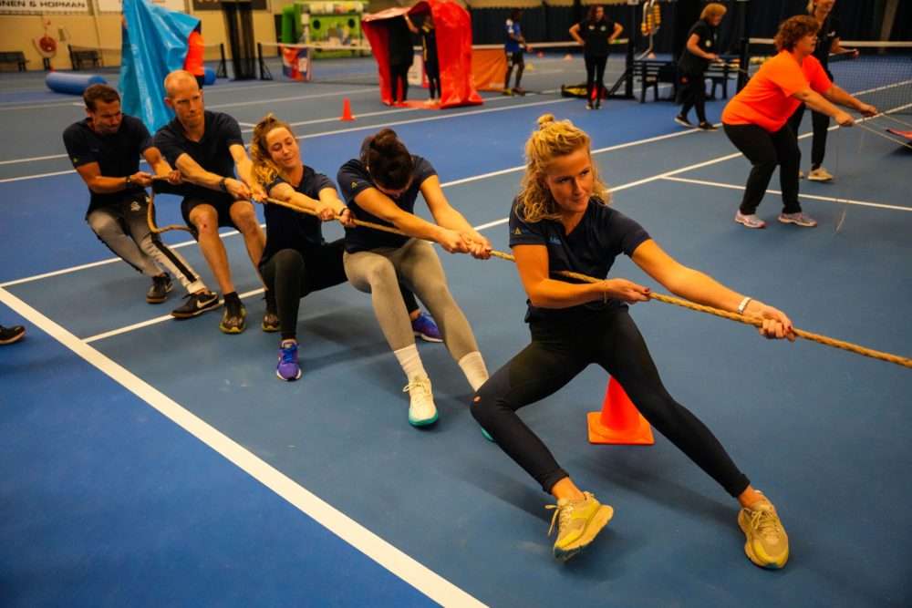 Op vrijdag 27 september werd de week afgesloten met een spannende meerkamp bij Padel en Tennisvereniging de Eemslag. Oorspronkelijk zou dit meerkamp plaatsvinden op de velden van de Rugbyclub Spakenburg, maar helaas door het slechte weer werd ook dit evenement verplaatst. Teams van bedrijven, verenigingen, vrienden en familieleden streden tegen elkaar in verschillende sportieve onderdelen, zoals touwtrekken, een stormbaanrace en een fietsbanden-estafette. Daarnaast was Laura Jansen (Fysiohuis) namens het Vitaliteitshuis aanwezig om bedrijven te informeren over Vitaliteit op de Werkvloer. De combinatie van plezier en teambuilding zorgde voor een energieke en geslaagde afsluiting van de Nationale Sportweek. Het team “De Groenschooltijgers’ ging met de trofee naar huis.